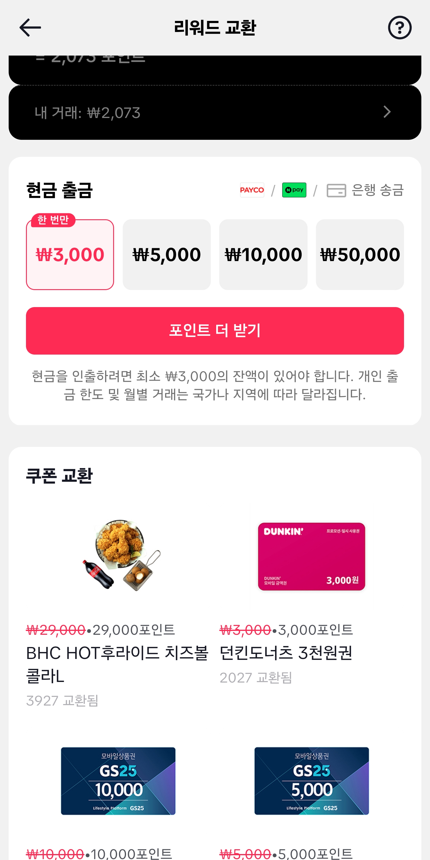 - 편의점 쿠폰, 문화상품권 등으로 교환.